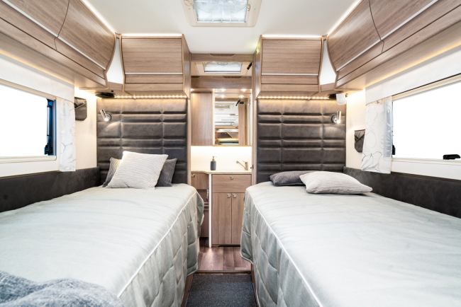 • Solidna przestrzeń ładunkowa znajdująca się w podwójnej podłodze naszych w pełni zintegrowanych kamperów ułatwia dostęp do bagażu.