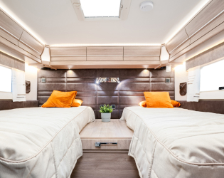 • Solidna przestrzeń ładunkowa znajdująca się w podwójnej podłodze naszych w pełni zintegrowanych kamperów ułatwia dostęp do bagażu.