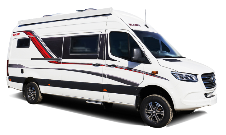 - KABE Van jest dostępny w eleganckim niebiesko-szarym metalicznym nadwoziu, Tenorite-Grey z grafiką 3D i naklejkami