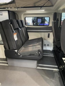 - Przesuwana 3-osobowa tylna ławka z przebudową na łóżko