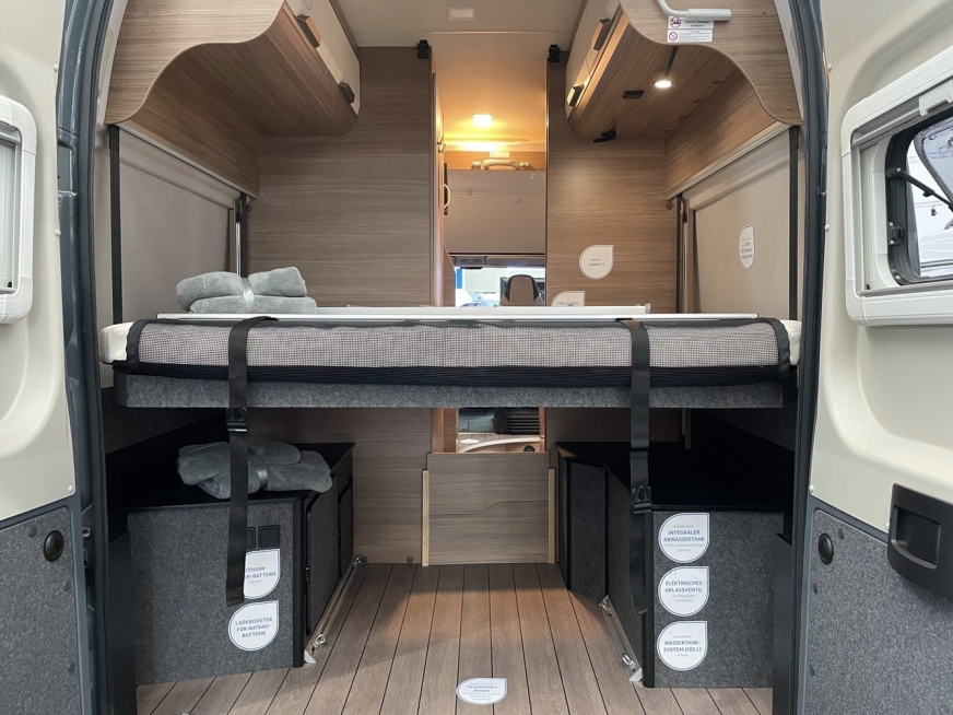 - Tylne łóżko piętrowe, pod spodem (dodatkowe łóżko pod tylnym rozkładanym łóżkiem)