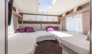 • Drzwi nadwozia: KNAUS PREMIUM: samochodowy system zamykania, konstrukcja jednoczęściowa, z podwójną uszczelką, wielokrotne ryglowanie, ukryty system zawiasów, ograniczenie otwarcia / blokowanie położenia drzwi sprężyną gazową, w tym okienko z plisowanym zaciemnieniem, zintegrowana przegroda na parasol, wysokiej jakości aplikacje, wielofunkcyjna torba w stylu KNAUS