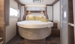 - Drzwi kabiny: KNAUS PREMIUM: z następującymi dodatkowymi funkcjami w porównaniu do drzwi KNAUS COMFORT: wielokrotne ryglowanie, ukryty system zawiasów, ograniczenie otwierania / blokowanie drzwi za pomocą sprężyny gazowej, w tym okno z plisami, zintegrowana przegroda na parasol, wysokiej jakości aplikacje, wielofunkcyjna torba w stylu KNAUS