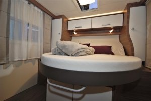 - Drzwi kabiny: KNAUS PREMIUM: z następującymi dodatkowymi funkcjami w porównaniu do drzwi KNAUS COMFORT: wielokrotne ryglowanie, ukryty system zawiasów, ograniczenie otwierania / blokowanie drzwi za pomocą sprężyny gazowej, w tym okno z plisami, zintegrowana przegroda na parasol, wysokiej jakości aplikacje, wielofunkcyjna torba w stylu KNAUS
