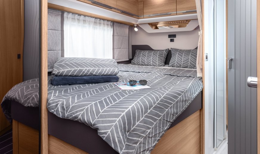 • Drzwi kabiny: KNAUS PREMIUM: z następującymi dodatkowymi funkcjami w porównaniu do drzwi KNAUS COMFORT: wielokrotne ryglowanie, ograniczenie otwierania / blokowanie drzwi za pomocą sprężyny gazowej, w tym okno z plisowaną roletą, zintegrowana przegroda na parasol, wysokiej jakości wykończenia, wielofunkcyjna torba we wzornictwie KNAUS