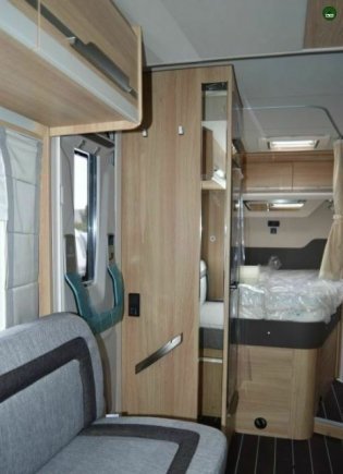 - Drzwi kabiny: KNAUS PREMIUM: z następującymi dodatkowymi cechami w porównaniu do drzwi KNAUS COMFORT: wielokrotne ryglowanie, ukryty system zawiasów, ograniczenie otwierania / mocowanie drzwi za pomocą sprężyny gazowej, w tym okno z plisami, zintegrowana przegroda na parasol, wysokiej jakości wykończenia, wielofunkcyjna torba we wzornictwie KNAUS