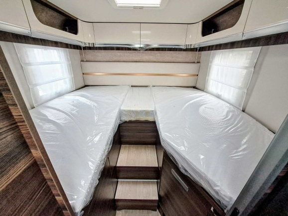 - Przestrzeń pod opuszczanym łóżkiem z szafkami ściennymi, dedykowanym oświetleniem bezpośrednim i pośrednim, wyściółką ze sztucznej skóry, systemem zabezpieczającym z podwójnym zaczepem i wygodnym centralnym zwalnianiem