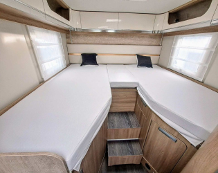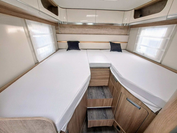 - Łóżko opuszczane elektrycznie (Panoramiczny świetlik zostaje zastąpiony świetlikiem 40x40 cm, gdy opuszczane łóżko jest montowane nad salonem) (cm): 186x85 (opcja)
