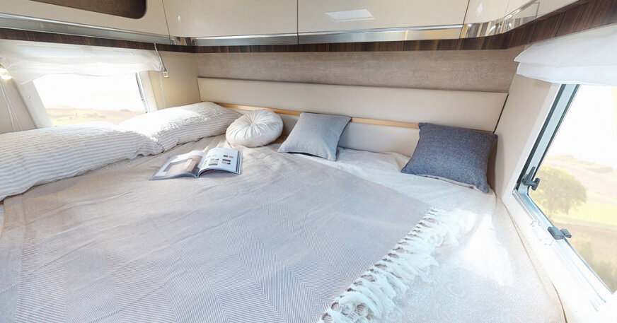 - Ogrzewanie gazowe dwufunkcyjne z rozprowadzeniem ciepła w całym wnętrzu, łącznie z garażem tylnym i kabiną kierowcy