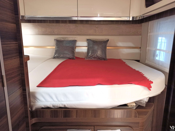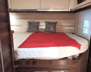 • Elektrycznie opuszczane łóżko nad salonem (Panoramiczny świetlik zostaje zastąpiony świetlikiem 40x40 cm, gdy opuszczane łóżko jest montowane nad salonem)