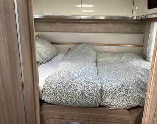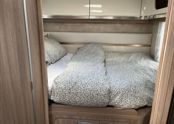 - Łóżko opuszczane elektrycznie (Panoramiczny świetlik zostaje zastąpiony świetlikiem 40x40 cm, gdy opuszczane łóżko jest montowane nad salonem) (cm): 186x139 (opcja)
