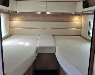 - Łóżko opuszczane elektrycznie (Panoramiczny świetlik zostaje zastąpiony świetlikiem 40x40 cm, gdy opuszczane łóżko jest montowane nad salonem), cm: 186x139 (opcja)