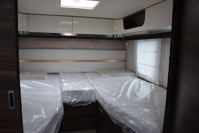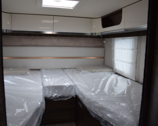 - Łóżko opuszczane elektrycznie (Panoramiczny świetlik zostaje zastąpiony świetlikiem 40x40 cm, gdy opuszczane łóżko jest montowane nad salonem) (cm): 186x139 (opcja)
