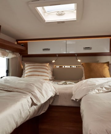 - Tylna sypialnia oddzielona przesuwanymi drzwiami (Emblema 509 LE, 512 E)