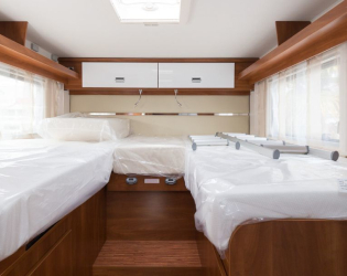 • Elektrycznie opuszczane łóżko nad salonem (Panoramiczny świetlik zostaje zastąpiony świetlikiem 40x40 cm, gdy opuszczane łóżko jest montowane nad salonem)