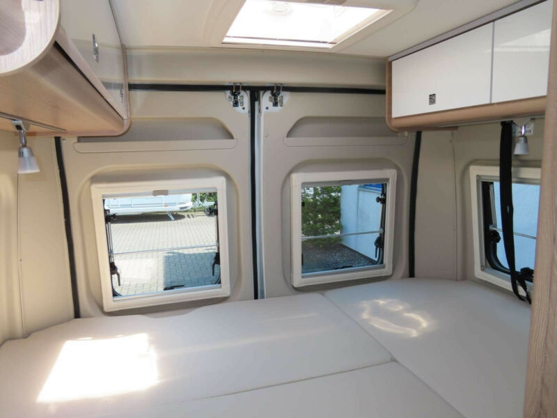 • Dach podnoszony, biały z podwójnym łóżkiem i systemem komfortowego wypoczynku (montaż obu akcesoriów, markizy i podnoszonego dachu, skraca długość markizy o 25 cm)