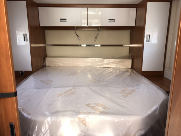 • Opuszczane łóżko z listwami i materacem o wysokim komforcie, dodatkowa markiza, okno dachowe z przezroczystą kopułą, podwójne lampki do czytania, półka i zasłonka oddzielająca dla maksymalnej prywatności