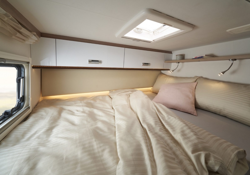 - Tylne podwójne łóżko z elektryczną regulacją wysokości