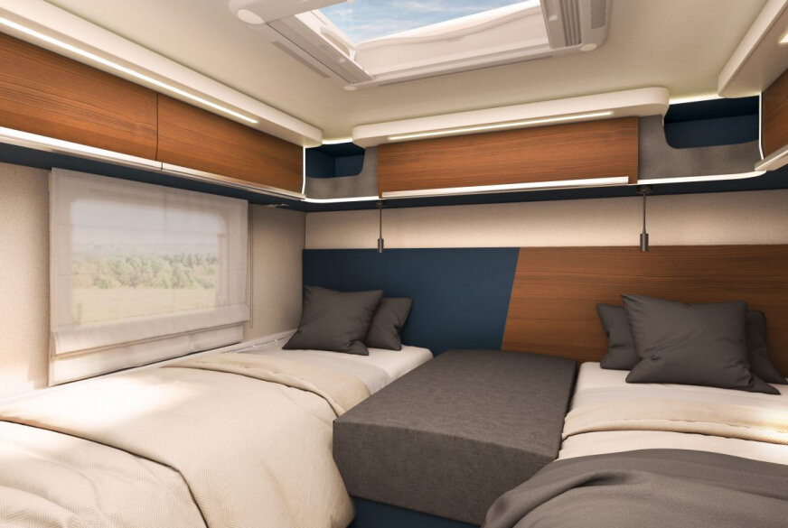 - Wewnętrzne żaluzje przesuwne, na przednią szybę i okna kabiny (zastępują standardową zasłonę oddzielającą kabinę/część mieszkalną)