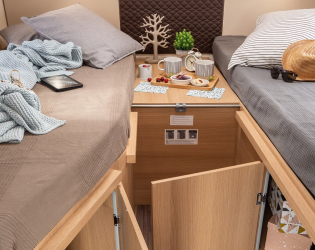 • W modelach z dwoma pojedynczymi łóżkami, podnoszone spody łóżek z wygodnym mechanizmem tłokowym
