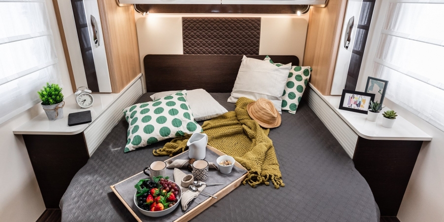 • Tkanina siedziska skoordynowana z tapicerką w kamperach Nevis