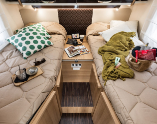 • W modelach z dwoma pojedynczymi łóżkami, podnoszone spody łóżek z wygodnym mechanizmem tłokowym