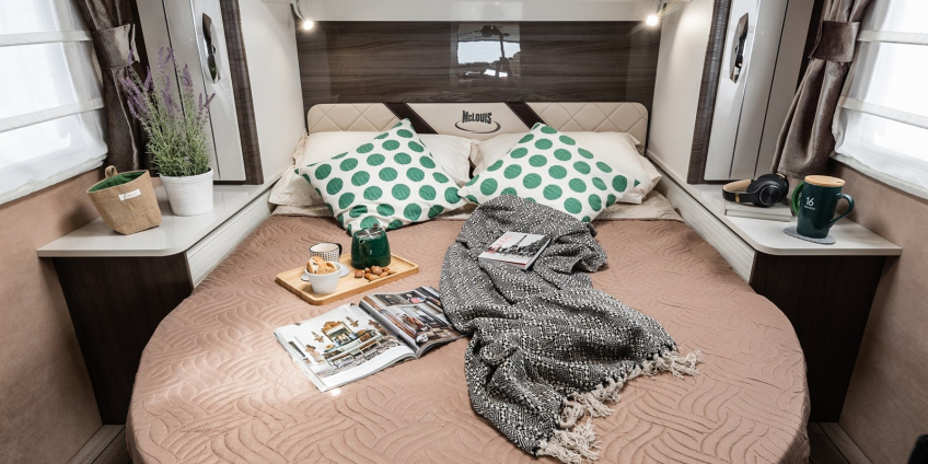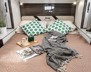 - Łóżko centralne z wysuwaną podstawą w modelach Mc4 862 i Nevis 862