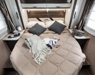 - Łóżko centralne z wysuwaną podstawą w modelach Mc4 862 i Nevis 862