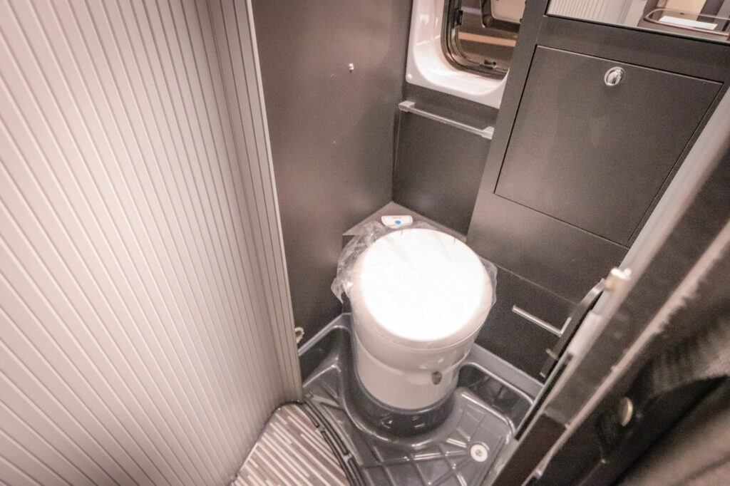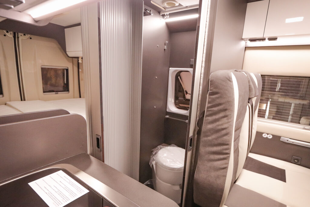 • Prysznic oddzielony sztywnymi składanymi drzwiami (zależnie od modelu)