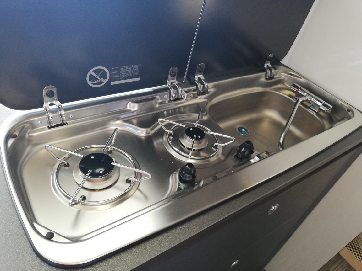 Stylistyczny akcent McLouis wyraża się w nowoczesnym designie, stylu motoryzacyjnym oraz w wyrafinowanych i skoordynowanych detalach, takich jak kamień akrylowy blatu kuchennego, składany stół i umywalka w łazience.