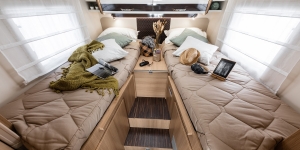 • W modelach z podwójnymi łóżkami, podnoszone podstawy łóżek z wygodnym mechanizmem tłokowym