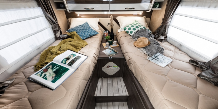 • Łóżko centralne z wysuwaną podstawą łóżka w modelach MC4 862 i Nevis 862