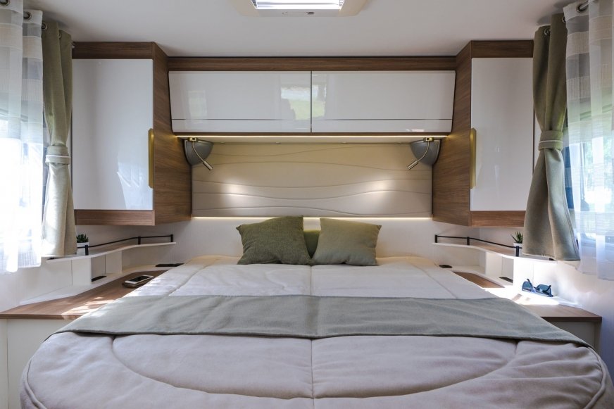 - Szafki zamiast składanego łóżka z przodu nad kabiną (z wyjątkiem planu piętra bez stałego łóżka)