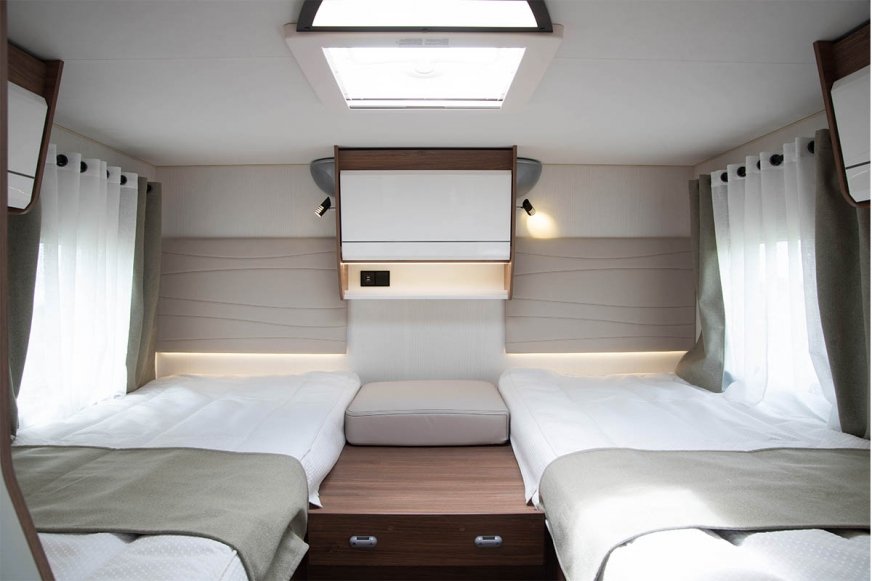 • Szafki zamiast składanego łóżka z przodu nad kabiną (z wyjątkiem układu wnętrza bez stałego łóżka)