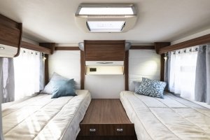 - Szafki zamiast składanego łóżka z przodu nad kabiną (z wyjątkiem planu piętra bez stałego łóżka)