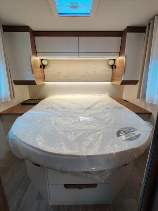 Niskoprofilowy P726FC ma wszystkie cechy większego modelu, mimo że mierzy zaledwie 7,20 m. Obejmuje salon twarzą w twarz, obszerną kuchnię, oddzielną łazienkę, duże łóżko wyspowe i opuszczane łóżko. Nie poszedł na kompromis w zakresie wielkości ani komfortu, z miejscem dla całej rodziny.