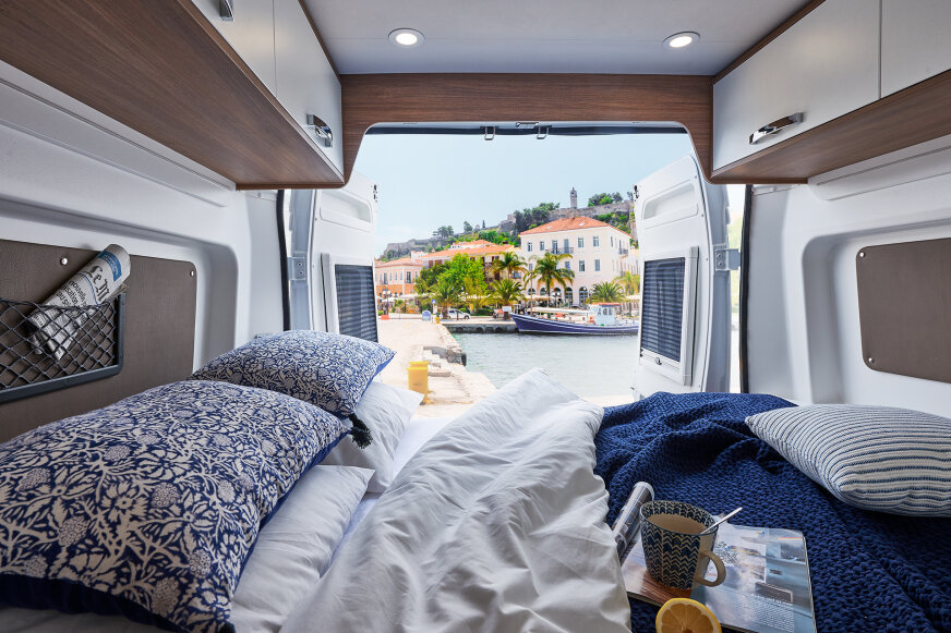 V630G z panoramicznym salonem łączy w sobie użyteczność furgonetki z wygodą kampera.
