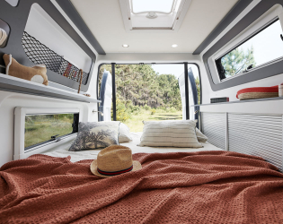 W celu zapewnienia przyjemnego dopływu światła pojazd wyposażono w panoramiczny dach o wymiarach 62x42 cm z zaciemnieniem i moskitierą.