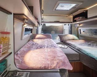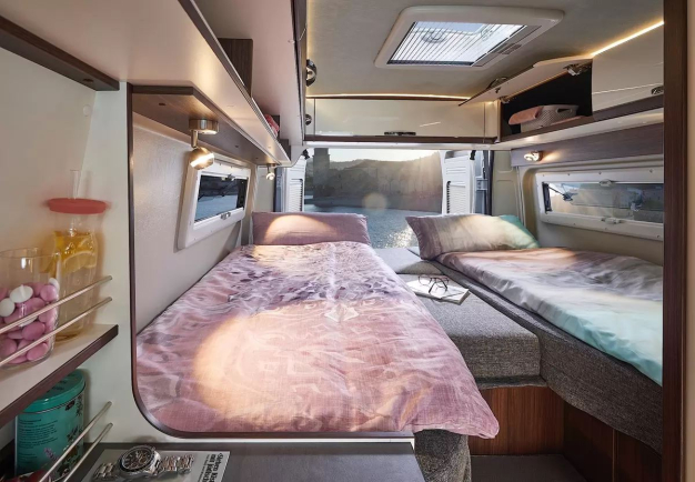 - Unikalna koncepcja otwartej przestrzeni z dużą ilością miejsca nad głową i swobodą poruszania się, jak w kamperze typu liniowego