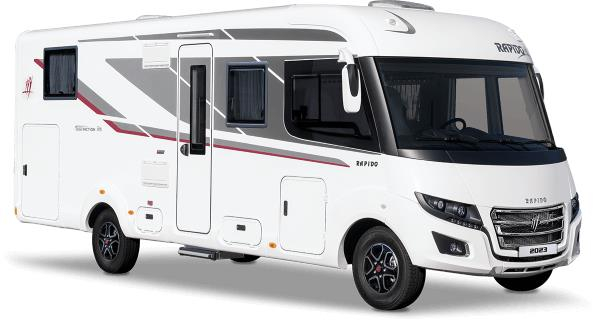 Kampery RAPIDO z kolekcji 2023 na podwoziu RHD posiadają szczególnie kompletne wyposażenie, w tym (w zależności od modelu) (Zobacz szczegóły dotyczące modelu w przewodniku technicznym. Wszystkie wymienione opcje są zawarte w cenie pojazdu dla modeli z kierownicą po prawej stronie. Waga tych opcji jest szczegółowo opisana w specyfikacjach technicznych i nie jest uwzględniona w DMC – dlatego należy ją odliczyć od ładowności):