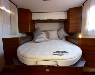 - Łóżko nad kabiną kierowcy ze stelażem listwowym, materac piankowy BULTEX®, opuszczane za pomocą siłowników
