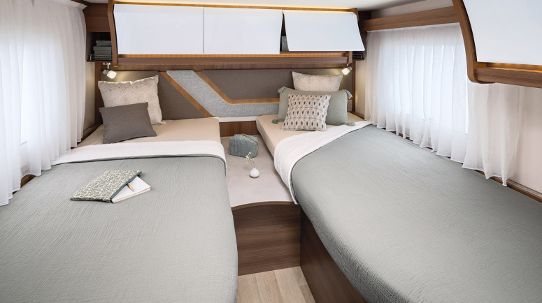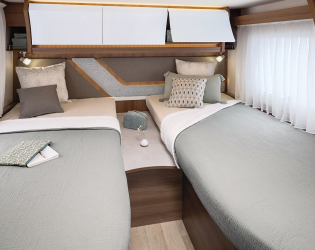 - Bez łóżka nad kabiną, z teleskopową nogą stołu w salonie umożliwiającą stworzenie miejsca do spania - opcja