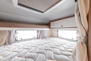 Inne cechy: przednie opuszczane łóżko w standardzie we wszystkich modelach niskoprofilowych, ogrzewanie Combi Gas z cyfrową jednostką sterującą CP Plus w standardzie, zakrzywione drzwi z zawiasami z amortyzatorami, drzwi do łazienki z ramą, wykładzina sufitowa z nowym rodzajem włókna szklanego, łóżko nad kabiną z pneumatycznymi podstawami listwowymi.