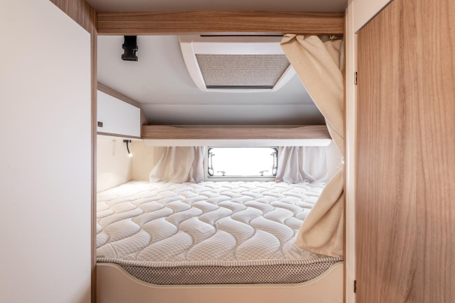 Dostępne są dwie wersje z zabudową o długości poniżej 7 metrów – zaskakująca Evo Sound z 6 homologowanymi siedzeniami i 7 łóżkami oraz Evo 5 z największym garażem w swojej kategorii. Jest też wyjątkowy w swojej klasie Evo 77 Plus z podwójną jadalnią i podwójnym opuszczanym łóżkiem. Evo 69 Plus ma centralne łóżko, takie jak to, które masz w domu, a Evo 95 Plus ma podwójne łóżka, które można przekształcić w przestronne łóżko typu king-size.