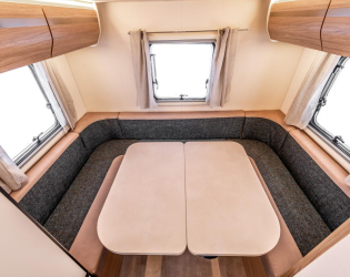 Dostępne są dwie wersje z zabudową o długości poniżej 7 metrów – zaskakująca Evo Sound z 6 homologowanymi siedzeniami i 7 łóżkami oraz Evo 5 z największym garażem w swojej kategorii. Jest też wyjątkowy w swojej klasie Evo 77 Plus z podwójną jadalnią i podwójnym opuszczanym łóżkiem. Evo 69 Plus ma centralne łóżko, takie jak to, które masz w domu, a Evo 95 Plus ma podwójne łóżka, które można przekształcić w przestronne łóżko typu king-size.