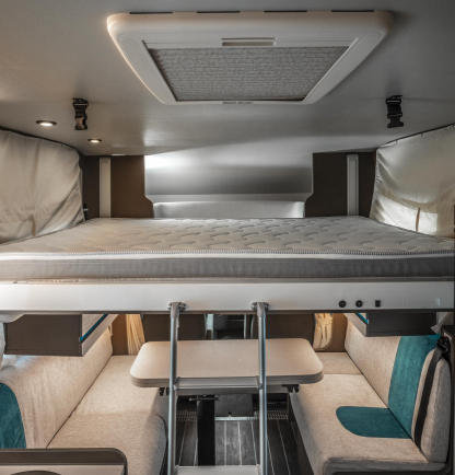 • Opuszczane łóżko z wbudowanym silnikiem i systemem blokady bezpieczeństwa w standardzie we wszystkich modelach półzintegrowane
