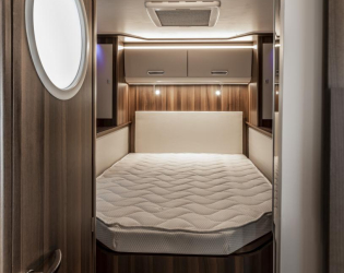 Inne cechy: opuszczane przednie łóżko w standardzie we wszystkich półzintegrowanych modelach, ogrzewanie gazowe Combi z cyfrowym sterownikiem CP Plus w standardzie, zakrzywione szafki z zawiasami amortyzującymi, podwyższona wysokość wnętrza pod opuszczanym łóżkiem (192 cm), łóżko w alkowie z pneumatycznymi listwami.