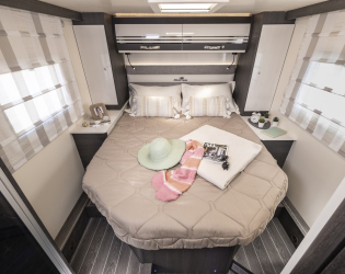 Różne układy części sypialnej, z łóżkami pojedynczymi, łóżkami typu queen-size, łóżkami piętrowymi lub łóżkami poprzecznymi. W serii Kronos każdy komfort snu jest dostępny w standardzie. Duże okna boczne i świetliki dachowe zapewniają światło i wentylację. Dla większych załóg dostępne są łóżka opuszczane lub łóżka, które można stworzyć po przekształceniu salonu.