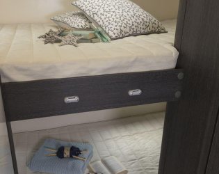 Meble posiadają zabezpieczenie miękkim materiałem do łączenia mebli z korpusem zewnętrznym. Plastikowa przekładka oddziela dolną podłogę od szyny podwozia.