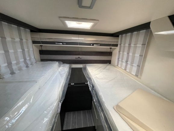 Różne układy części sypialnej, z łóżkami pojedynczymi, łóżkami typu queen-size, łóżkami piętrowymi lub łóżkami poprzecznymi. W serii Kronos każdy komfort snu jest dostępny w standardzie. Duże okna boczne i świetliki dachowe zapewniają światło i wentylację. Dla większych załóg dostępne są łóżka opuszczane lub łóżka, które można stworzyć po przekształceniu salonu.
